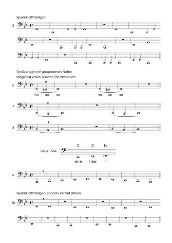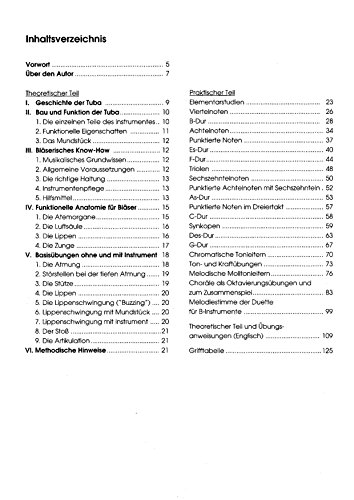 Die Elementarschule für Tuba in B von Bruno Uetz legt besonderen Wert auf die systematische Entwicklung von Klangfülle und rhythmischer Sicherheit. Aufbauend auf dieses tubatypische Fundament folgen ergänzend spezielle Übungen und Stücke zur Entwicklung von Technik und natürlicher Musikalität. Die zahlreichen Duette wollen das Gefühl für ein musikalisches Hauptanliegen vermitteln - das Zusammenspiel mit Anderen. Um gleich zu Beginn mögliche Fehler zu vermeiden, werden im theoretischen Teil die physiologischen Vorgänge beim Blasen erstmals in einer Tubaschule genau beschrieben und durch detaillierte Übungen verständlich gemacht. Hier kann auch der fortgeschrittene Bläser noch einige Anregungen finden. Es hat sich ferner gezeigt, dass die Übungen auch für alle anderen Tubainstrumente hervorragend geeignet sind - der tiefen Lage wegen besonders nützlich zum Ton- und Ansatztraining. Mithilfe führender europäischer und amerikanischer Blechbläser entstand so eine Anfängerschule nach neuesten Erkenntnissen, die versucht, die Beherrschung des Instrumentes und der Freude am Musizieren gleichermaßen Rechnung zu tragen.